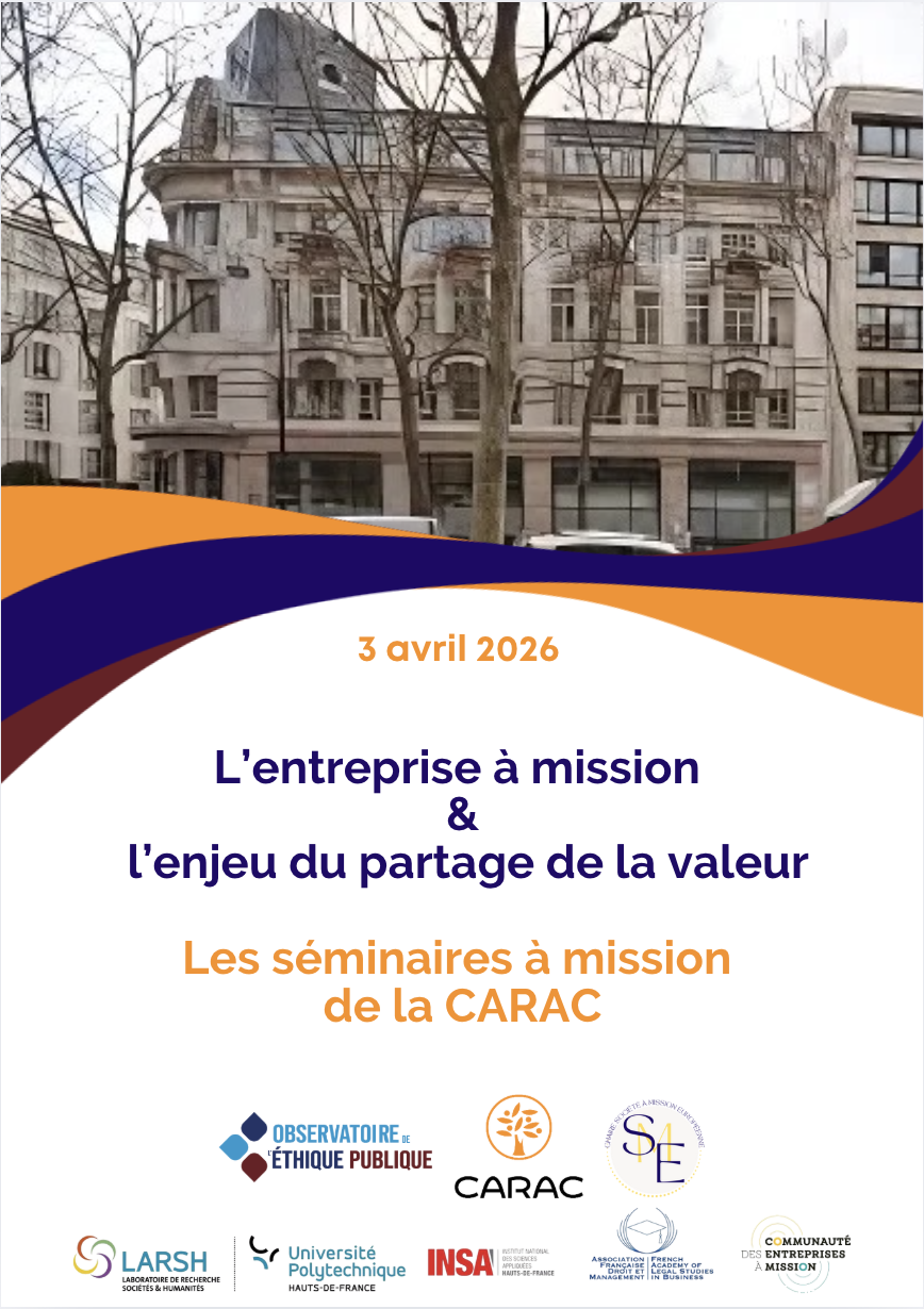 Agenda › 2025/2026 Les séminaires à mission de la CARAC L’entreprise à mission & l’enjeu du partage de la valeur L’entreprise à mission & l’enjeu du partage de la valeur Programme à venir Publié le 22/07/2025